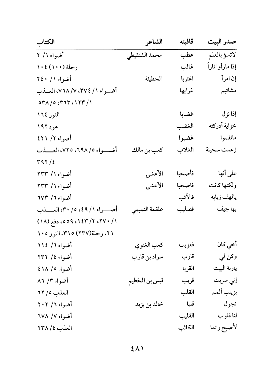 زعمت سخينة ... الغلاب ... كعب بن مالك ... أضواء ٥/ ٦٩٨، ٧٢٥، العذب ٤/ ٣٩٢