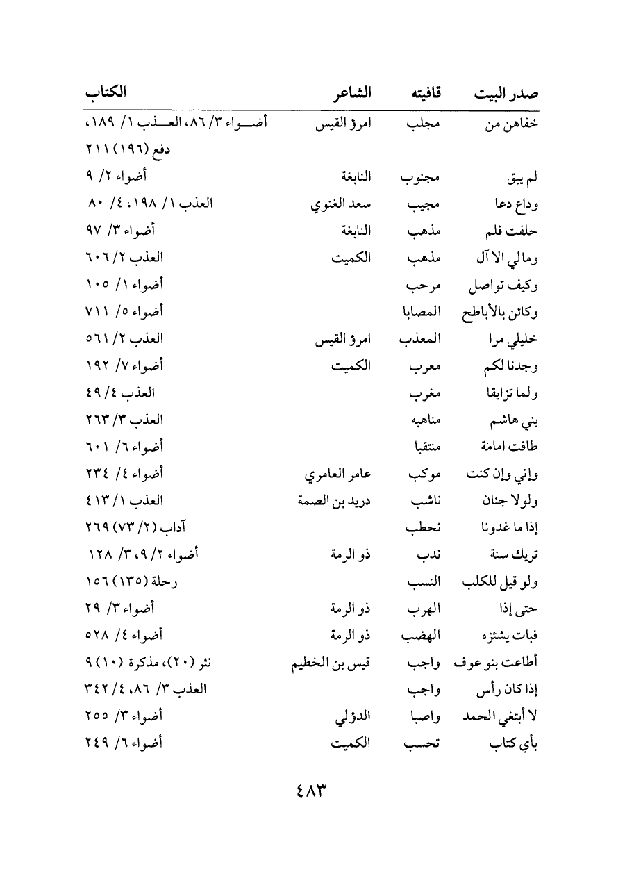 خفاهن من ... مجلب ... امرؤ القيس ... أضواء ٣/ ٨٦، العذب ١/ ١٨٩، دفع (١٩٦) ٢١١