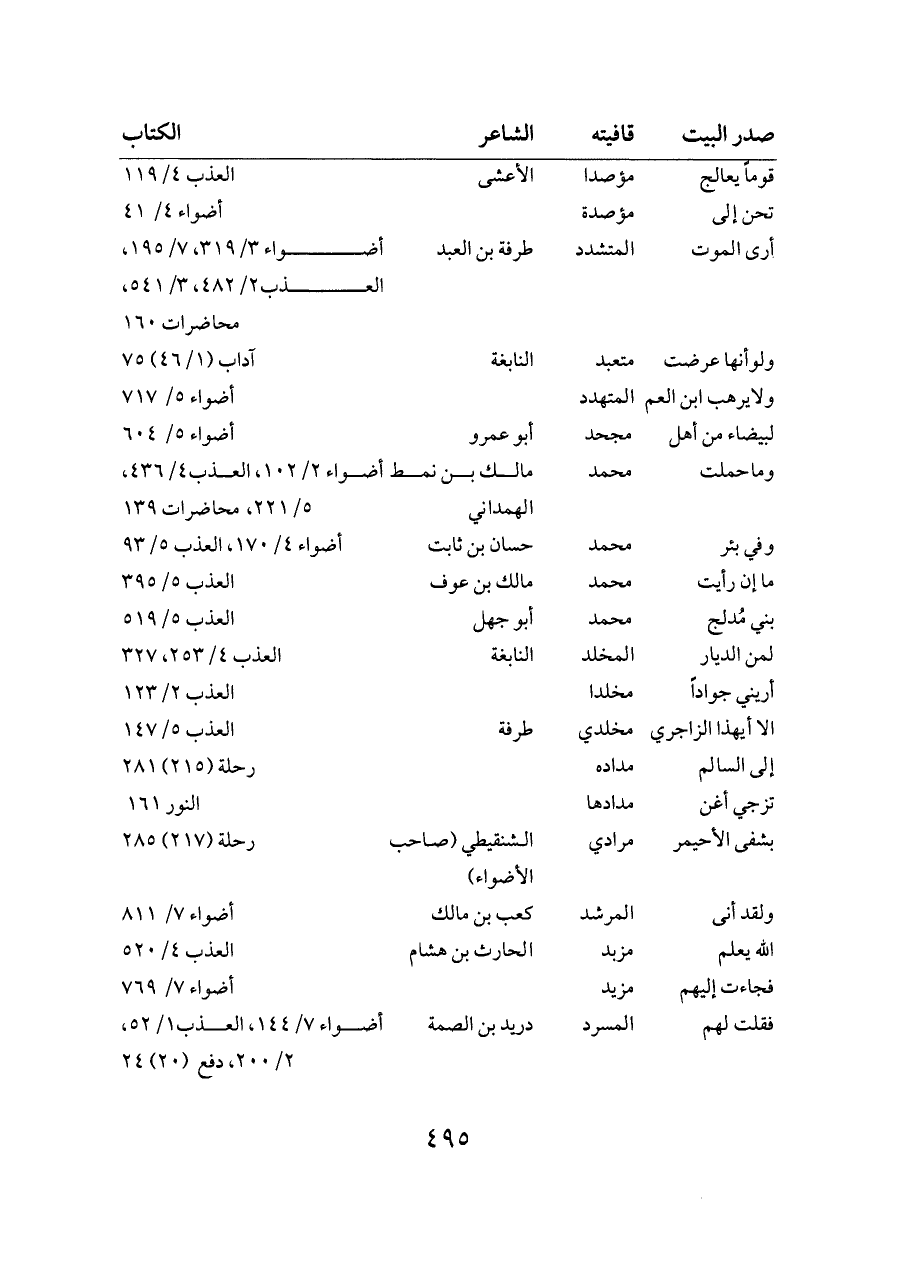فقلت لهم ... المسرد ... دريد بن الصمة ... أضواء ٧/ ١٤٤، العذب ١/ ٥٢، ٢/ ٢٠٠، دفع (٢٠) ٢٤