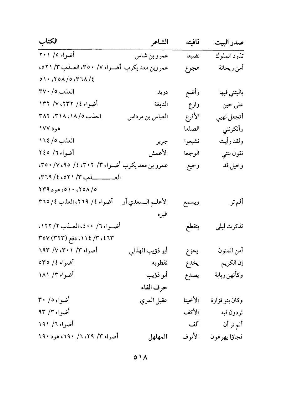 ولقد رأيت ... تشبعوا ... جرير ... العذب ٥/ ١٦٤