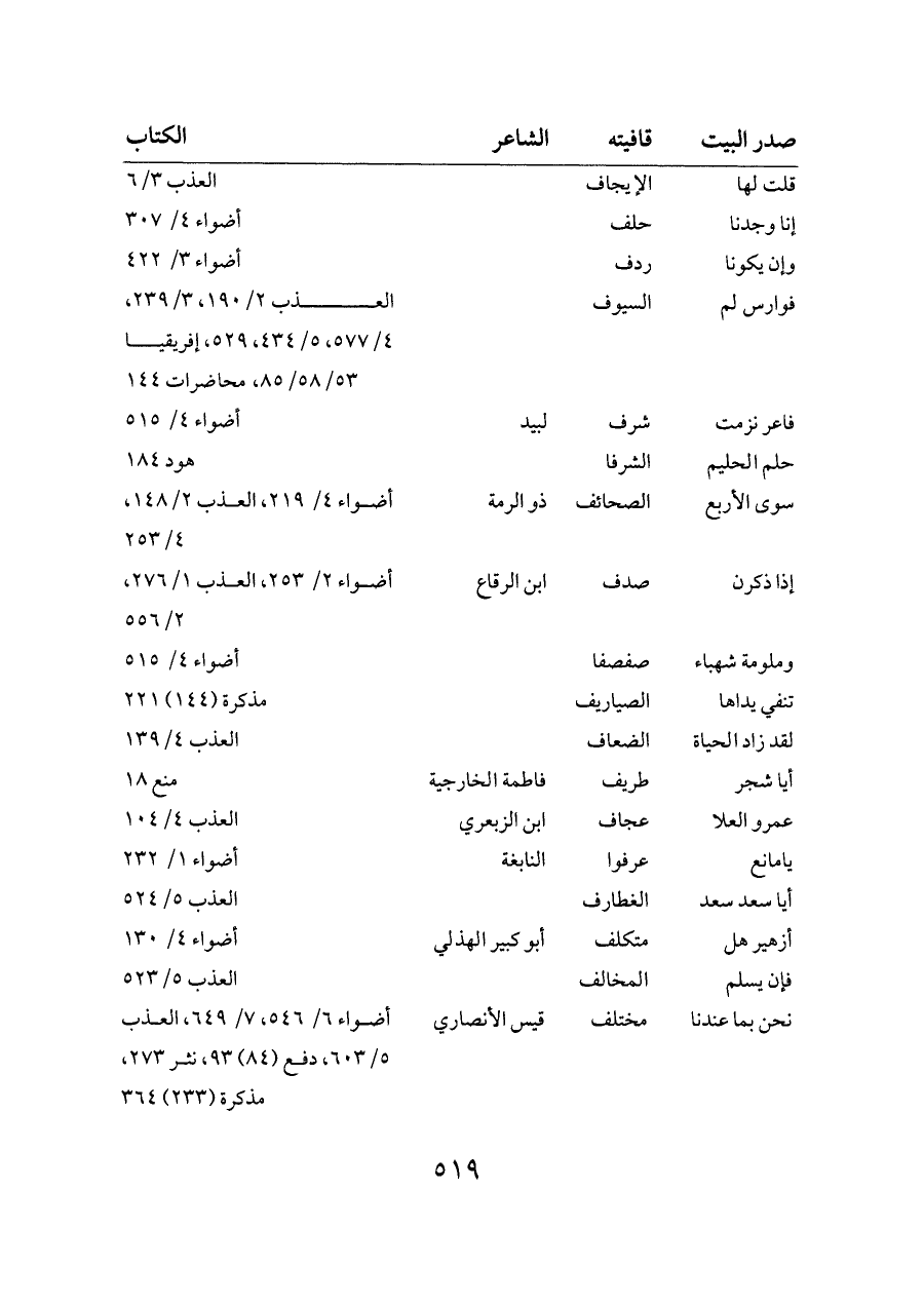 فاعر نزمت ... شرف ... لبيد ... أضواء ٤/ ٥١٥