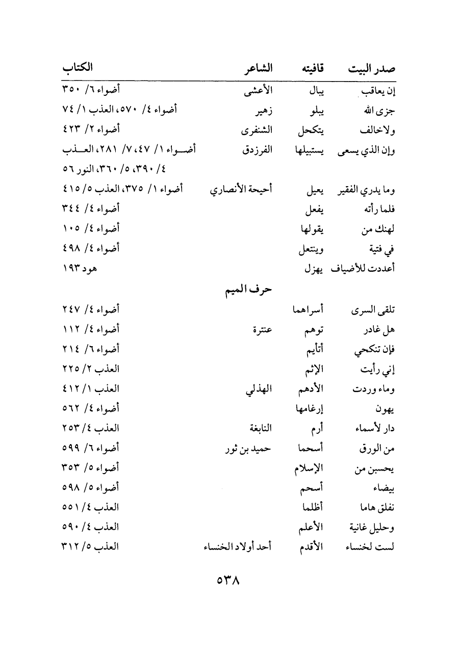 وما يدري الفقير ... يعيل ... أحيحة الأنصاري ... أضواء ١/ ٣٧٥، العذب ٥/ ٤١٥