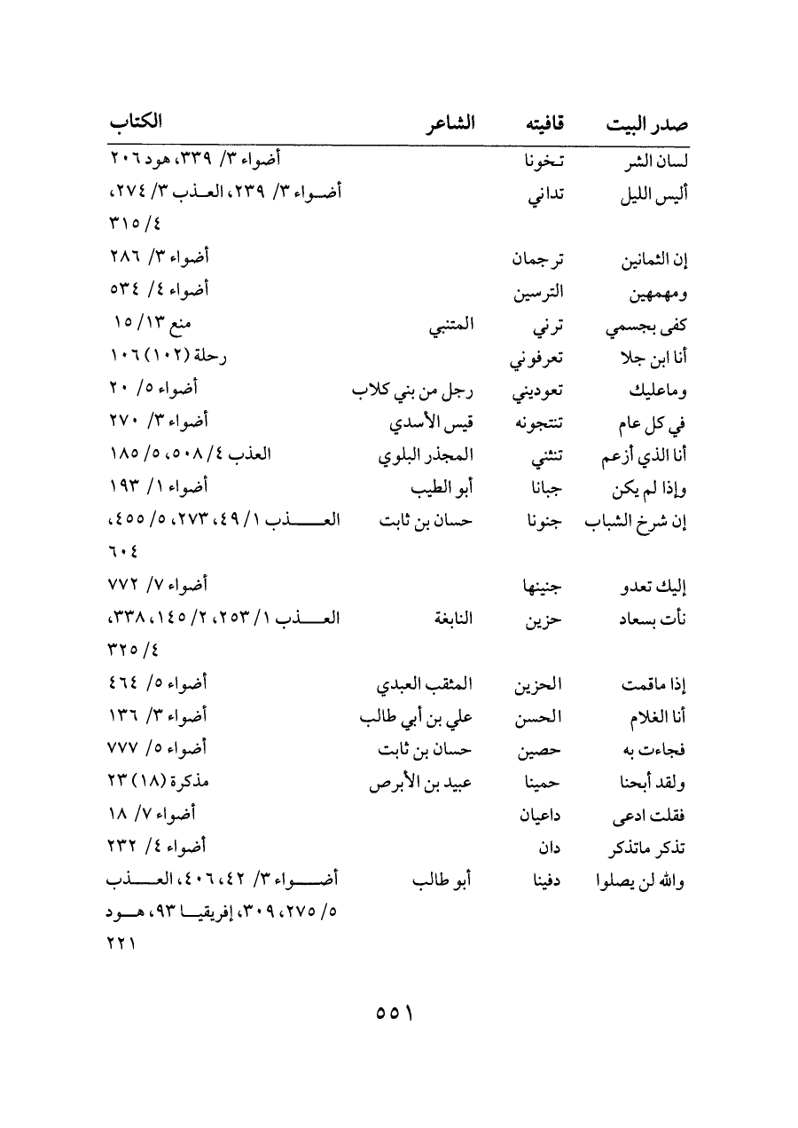 أليس الليل ... تداني ... أضواء ٣/ ٢٣٩، العذب ٣/ ٢٧٤، ٤/ ٣١٥