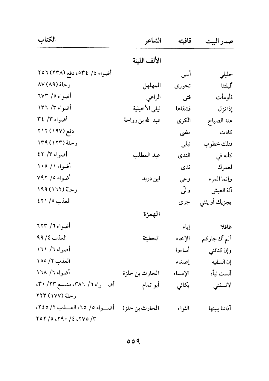 آذنتنا ببينها ... الثواء ... الحارث بن حلزة ... أضواء ٥/ ٦٥، العذب ٢/ ٢٤٥، ٣/ ٢٧٥، ٤/ ٢٩٠، ٥/ ٢٥٢