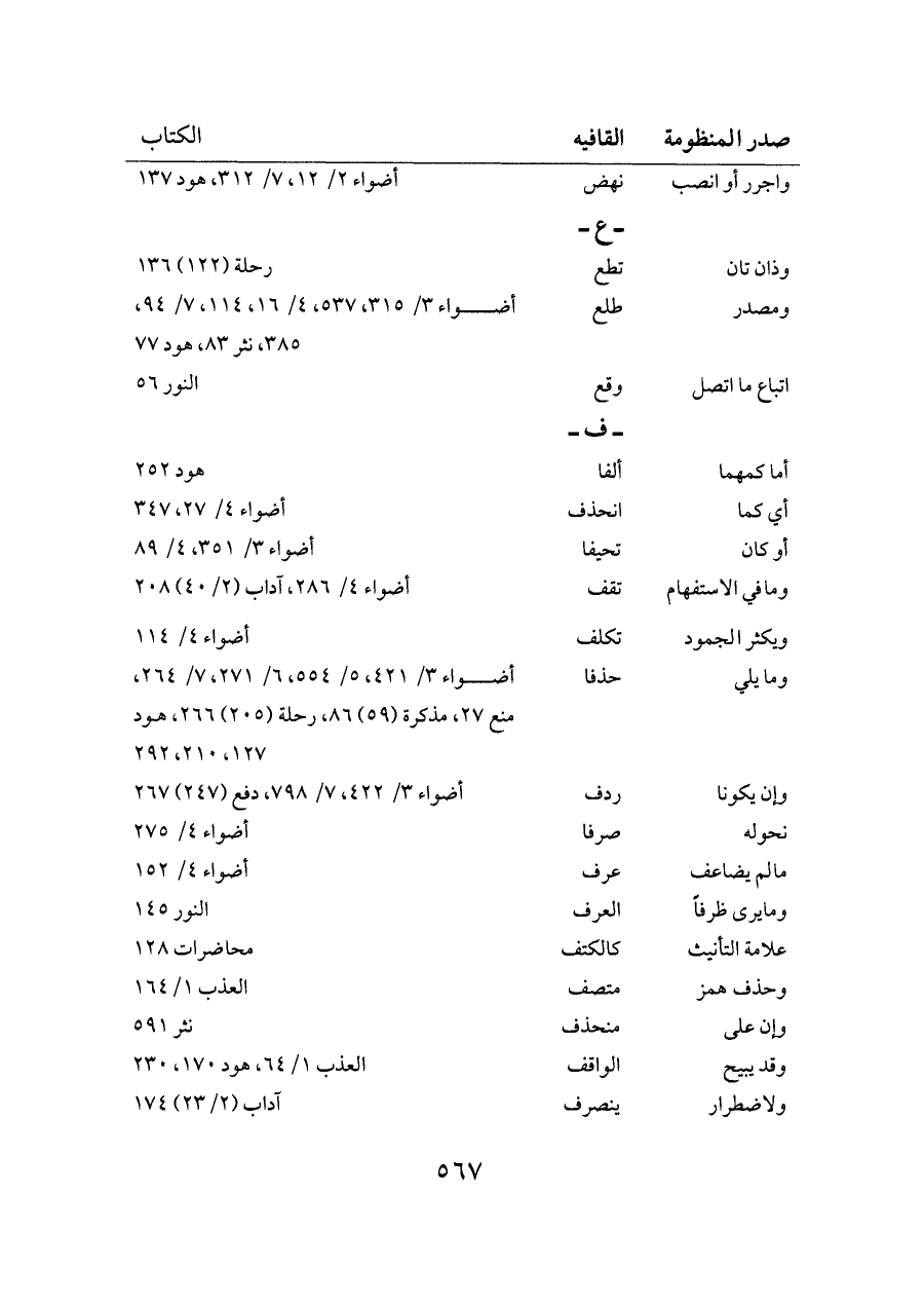 وما يلي ... حذفا ... أضواء ٣/ ٤٢١، ٥/ ٥٥٤، ٦/ ٢٧١، ٧/ ٢٦٤، منع ٢٧، مذكرة (٥٩) ٨٦، رحلة (٢٠٥) ٢٦٦، هود ١٢٧، ٢١٠، ٢٩٢