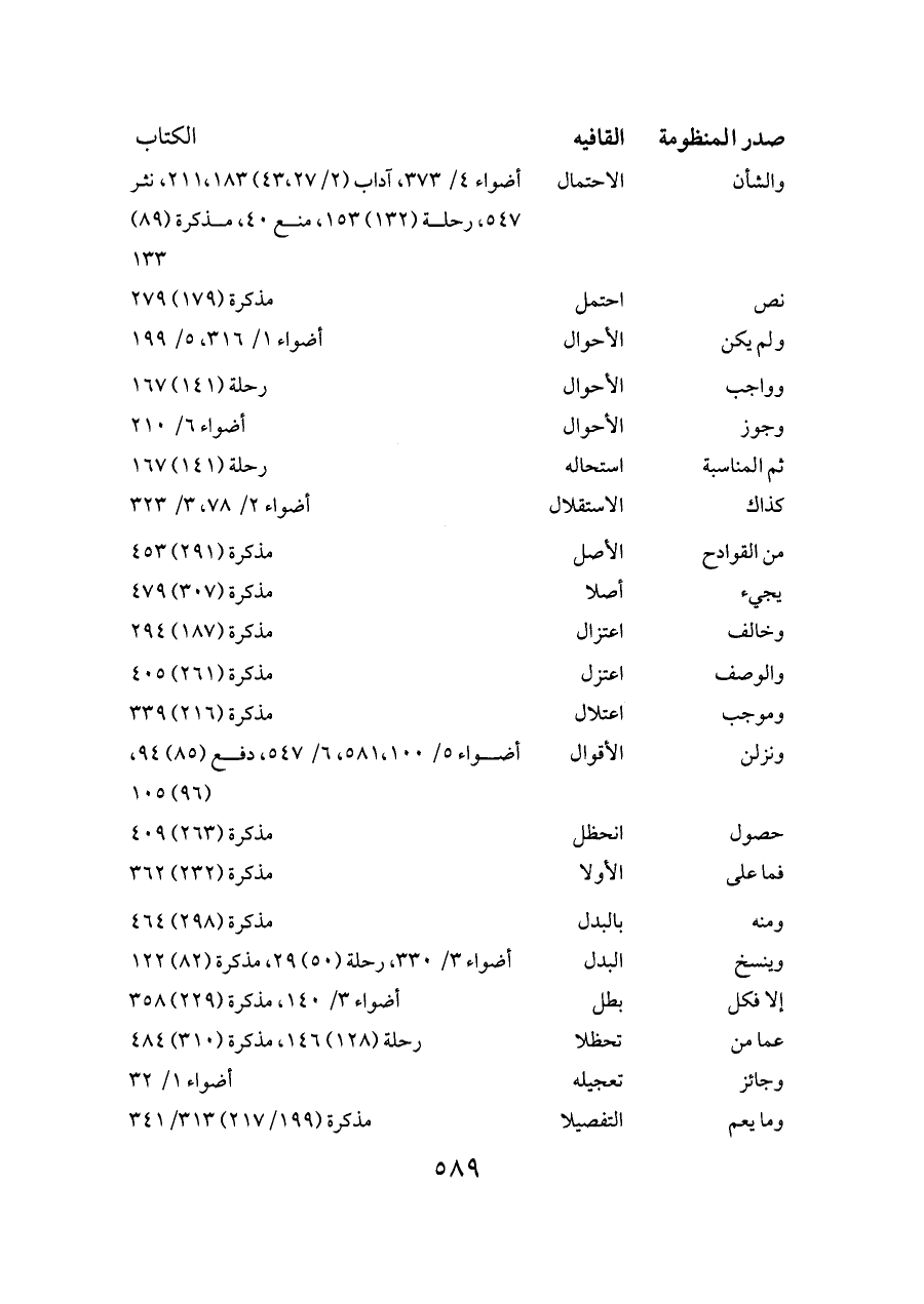 والشأن ... الاحتمال ... أضواء ٤/ ٣٧٣، آداب (٢/ ٢٧،٤٣) ١٨٣،٢١١، نثر ٥٤٧، رحلة (١٣٢) ١٥٣، منع ٤٠، مذكرة (٨٩) ١٣٣