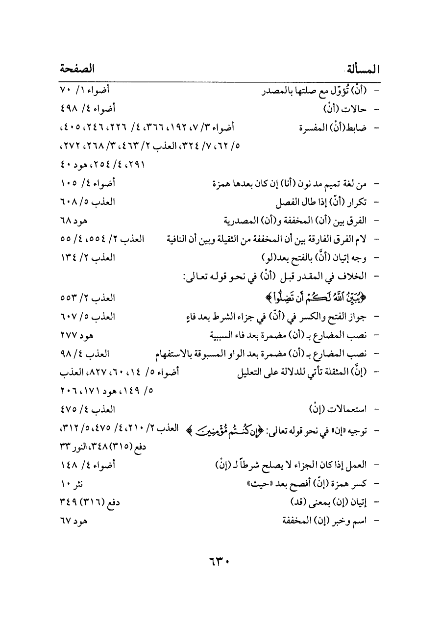- ضابط (أنْ) المفسرة ... أضواء ٣/ ٧، ١٩٢، ٣٦٦، ٤/ ٢٢٦، ٢٤٦، ٤٠٥، ٥/ ٦٢، ٧/ ٣٢٤، العذب ٢/ ٤٦٣، ٣/ ٢٦٨، ٢٧٢، ٢٩١، ٤/ ٢٥٤، هود ٤٠