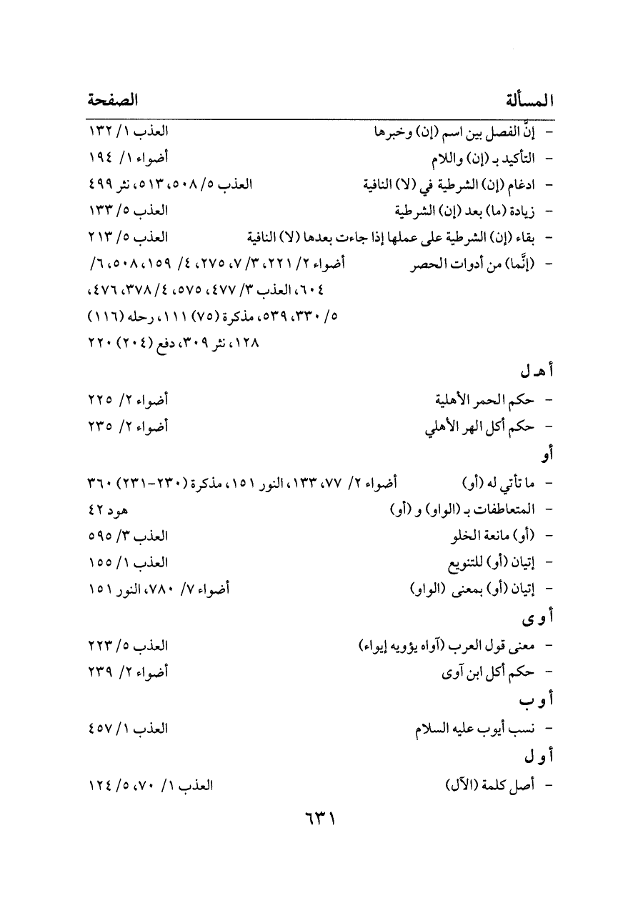 - (إنَّما) من أدوات الحصر ... أضواء ٢/ ٢٢١، ٣/ ٧، ٢٧٥، ٤/ ١٥٩، ٥٠٨، ٦/ ٦٠٤، العذب ٣/ ٤٧٧، ٥٧٥، ٤/ ٣٧٨، ٤٧٦، ٥/ ٣٣٠، ٥٣٩، مذكرة (٧٥) ١١١، رحله (١١٦) ١٢٨، نثر ٣٠٩، دفع (٢٠٤) ٢٢٠