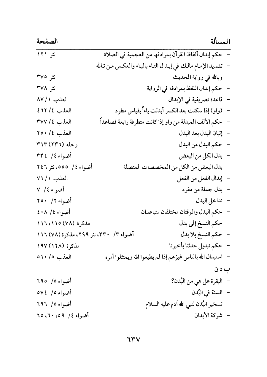 - حكم النسخ بلا بدل ... أضواء ٣/ ٣٣٠، نثر ٢٩٩، مذكرة (٧٨) ١١٦