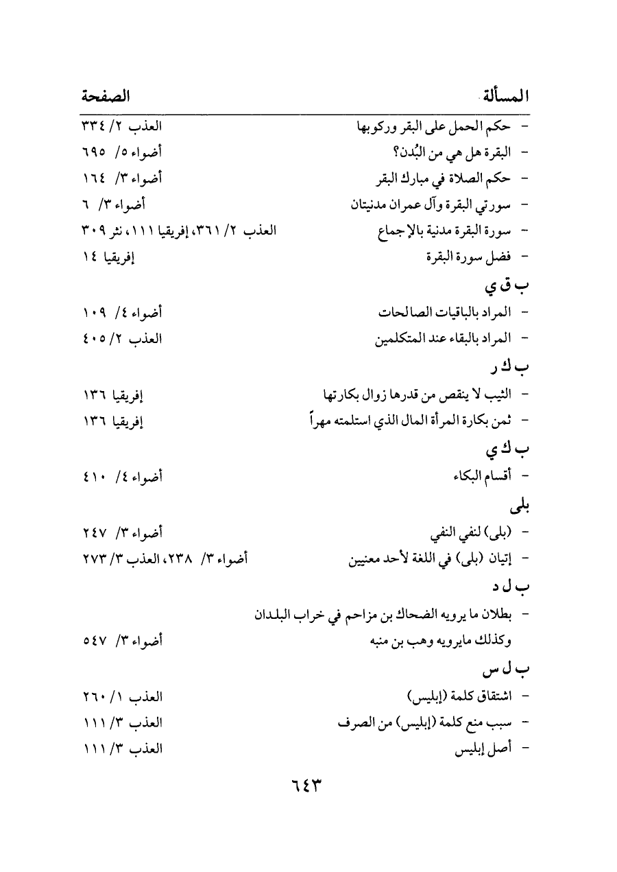 - إتيان (بلى) في اللغة لأحد معنيين ... أضواء ٣/ ٢٣٨، العذب ٣/ ٢٧٣