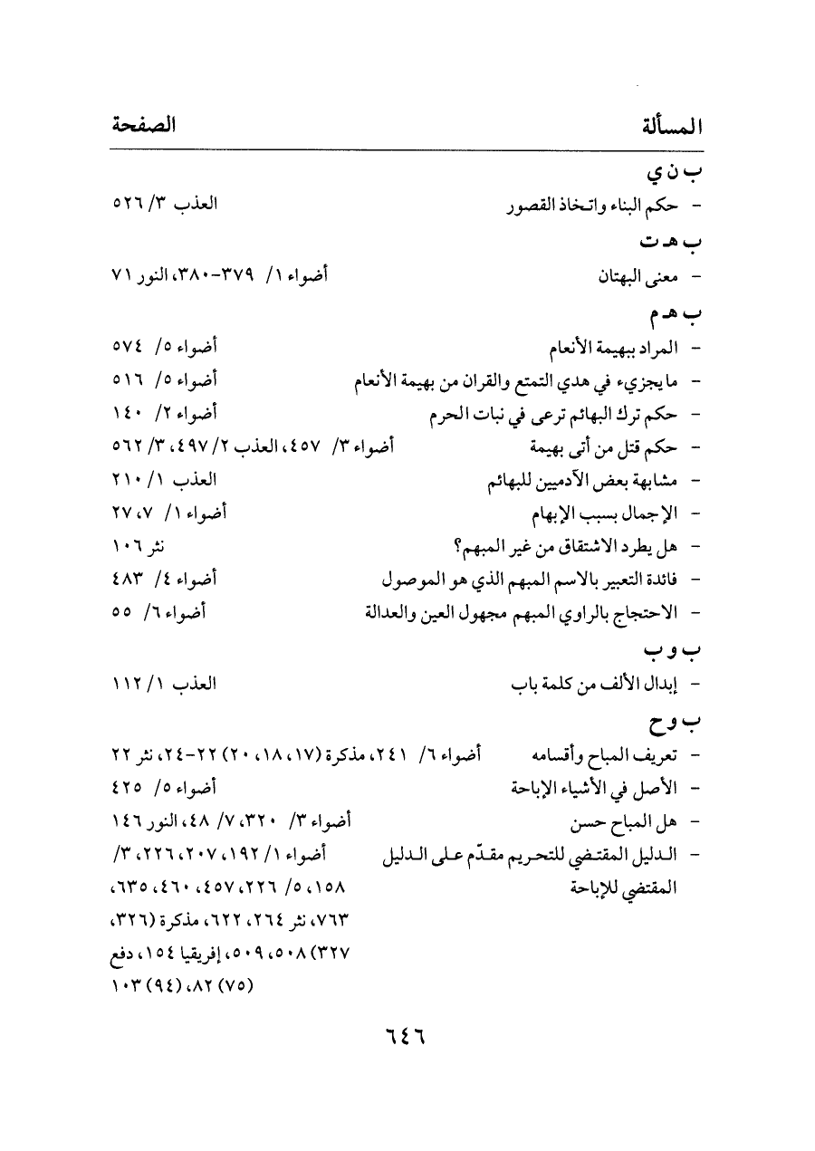 - تعريف المباح وأقسامه ... أضواء ٦/ ٢٤١، مذكرة (١٧، ١٨، ٢٠) ٢٢ - ٢٤، نثر ٢٢