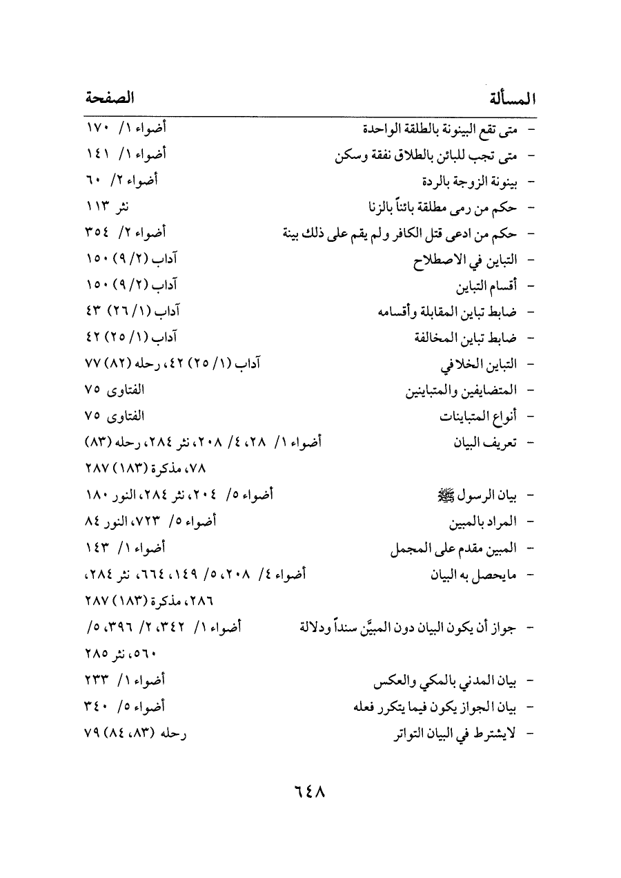- مايحصل به البيان ... أضواء ٤/ ٢٠٨، ٥/ ١٤٩، ٦٦٤، نثر ٢٨٤، ٢٨٦، مذكرة (١٨٣) ٢٨٧