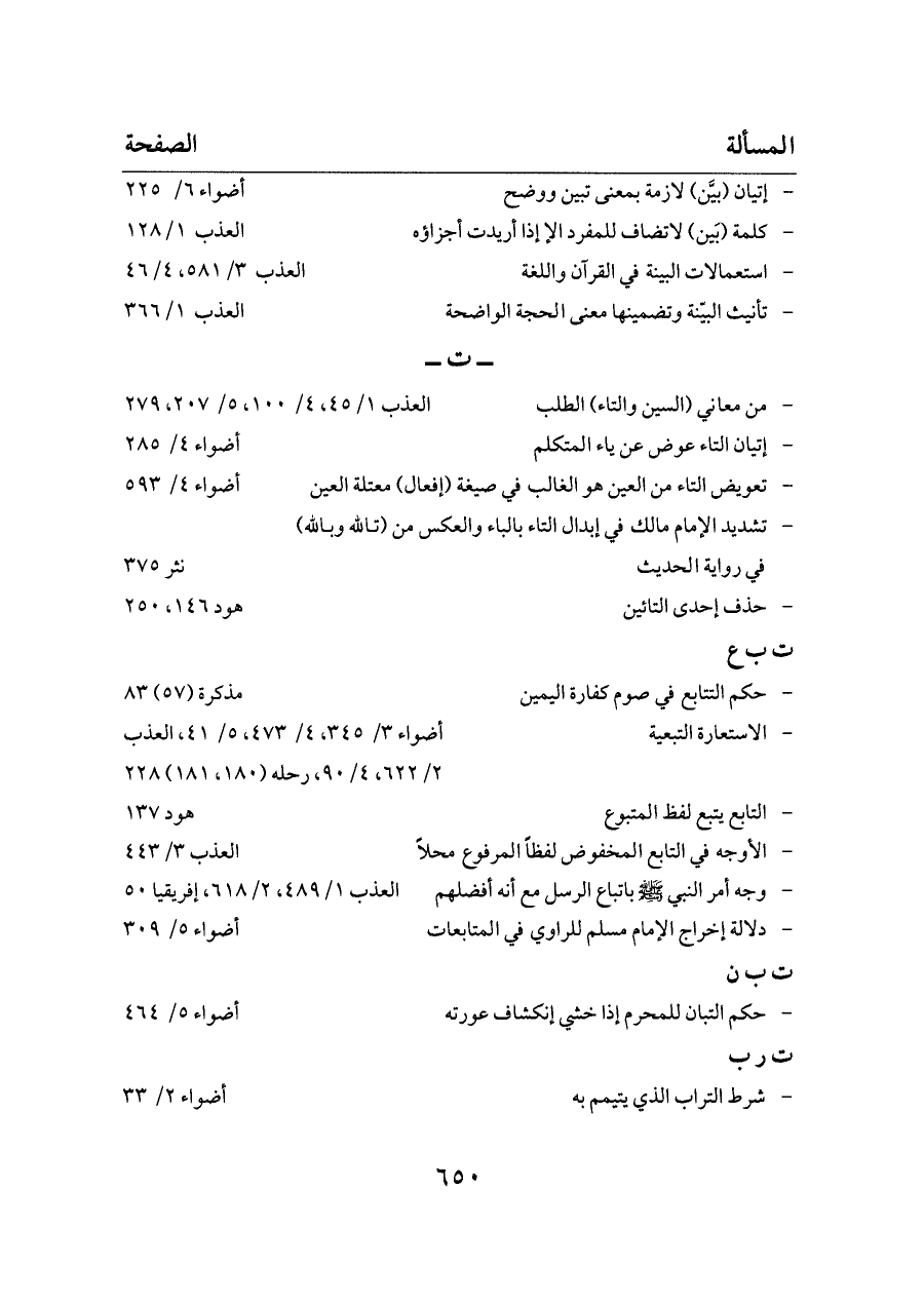 - إتيان التاء عوض عن ياء المتكلم ... أضواء ٤/ ٢٨٥