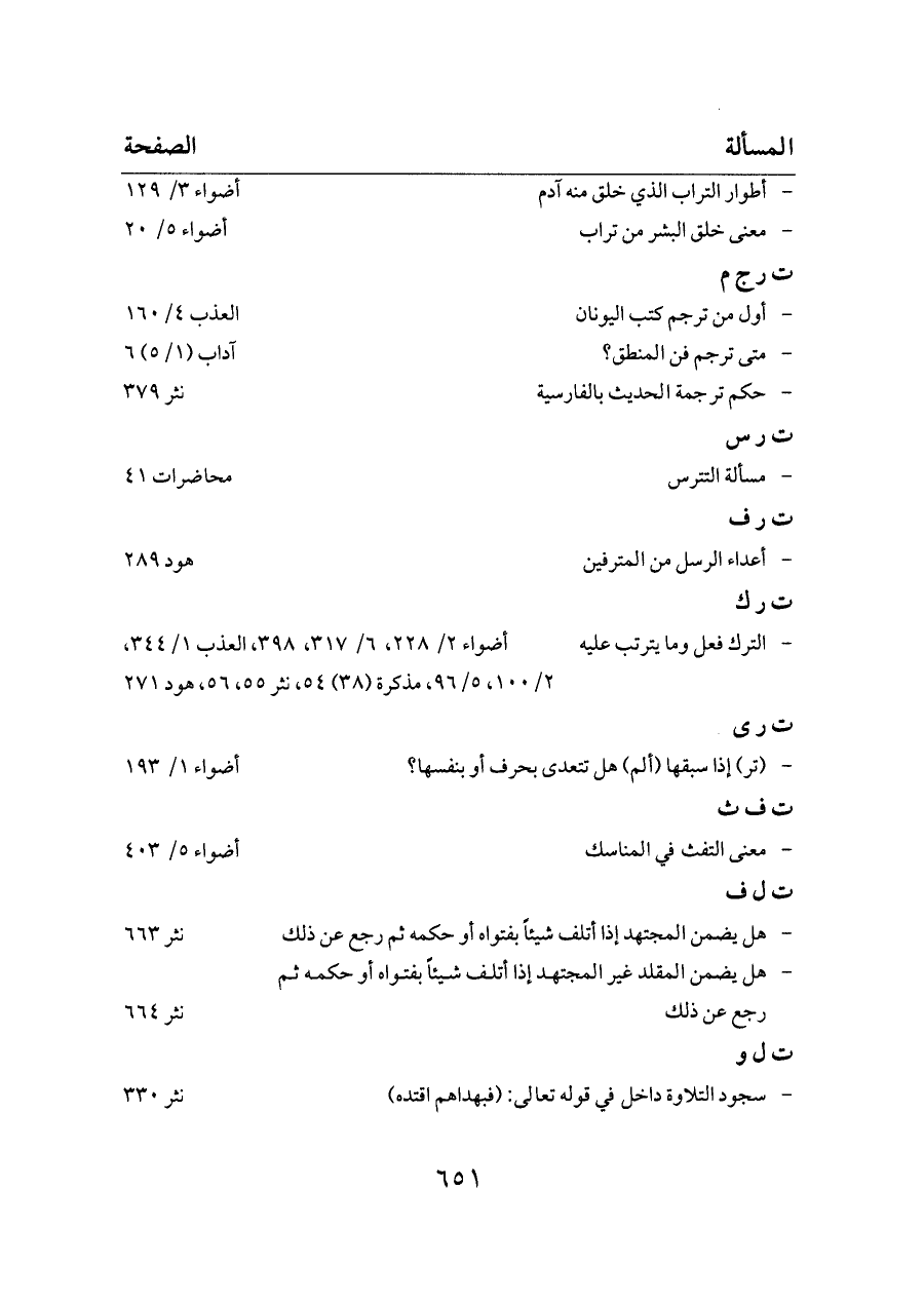 - الترك فعل وما يترتب عليه ... أضواء ٢/ ٢٢٨، ٦/ ٣١٧، ٣٩٨، العذب ١/ ٣٤٤، ٢/ ١٠٠، ٥/ ٩٦، مذكرة (٣٨) ٥٤، نثر ٥٥، ٥٦، هود ٢٧١