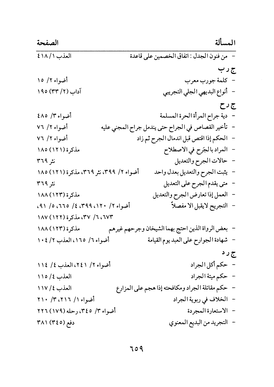 - التجريح لايقبل الا مفصلاً ... أضواء ٢/ ١٢٠، ٣٩٩، ٤/ ٦٦٥، ٥/ ٩١، ٦٧٣، ٦/ ٣٧، مذكرة (١٢٢) ١٨٧