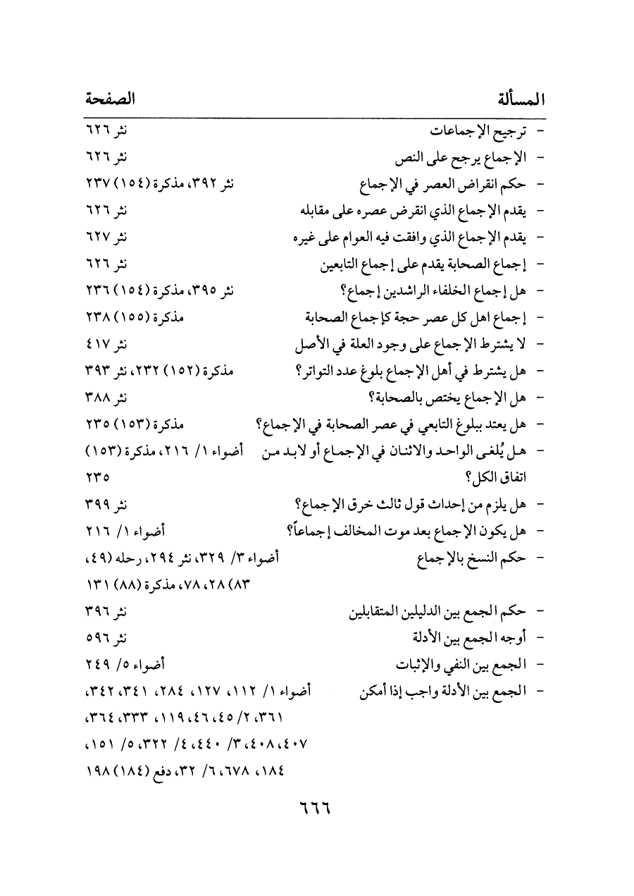 - يقدم الإجماع الذي وافقت فيه العوام على غيره ... نثر ٦٢٧