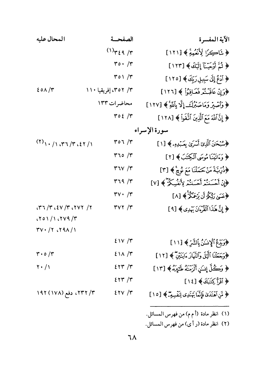 {سُبْحَانَ الَّذِي أَسْرَى بِعَبْدِهِ} [١] ... ٣/ ٣٥٦ ... ١/ ٤٢، ٣/ ٣٦، ١/ ١٠ (¬٢)
