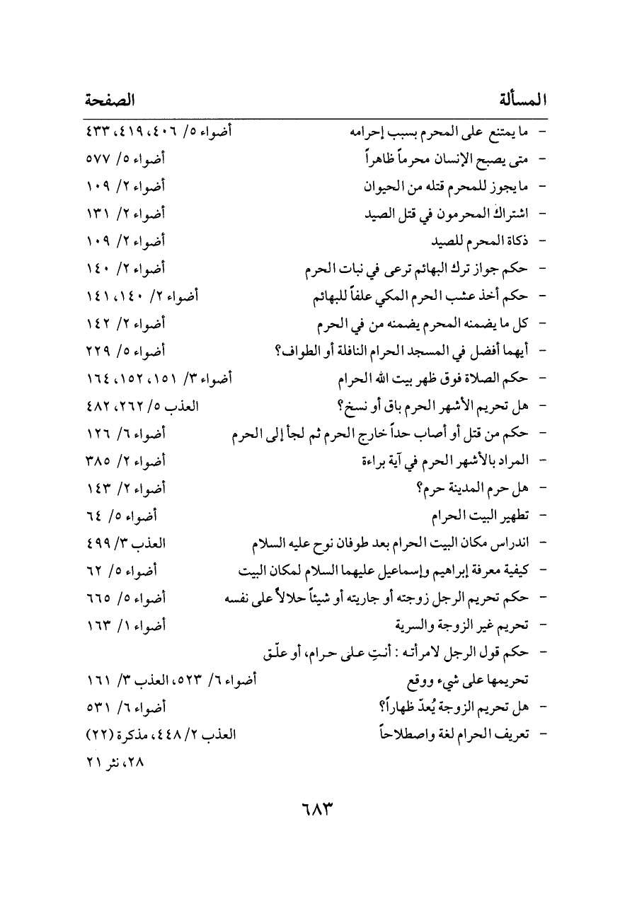 - تعريف الحرام لغة واصطلاحاً ... العذب ٢/ ٤٤٨، مذكرة (٢٢) ٢٨، نثر ٢١