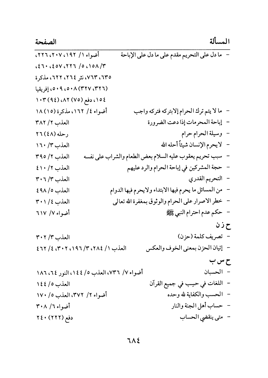 - الحسبان ... أضواء ٧/ ٧٣٦، العذب ٥/ ١٤٤، النور ٦٤، ١٨٦