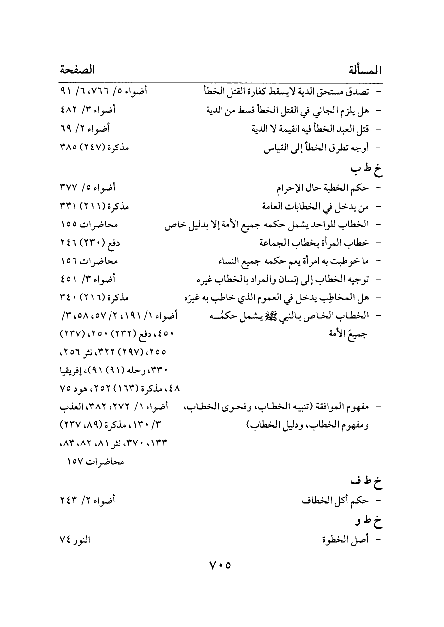 - الخطاب الخاص بالنبي - صلى الله عليه وسلم - يشمل حكمُه جميعَ الأمة ... أضواء ١/ ١٩١، ٢/ ٥٧، ٥٨، ٣/ ٤٥٠، دفع (٢٣٢) ٢٥٠، (٢٣٧) ٢٥٥، (٢٩٧) ٣٢٢، نثر ٢٥٦، ٣٣٠، رحله (٩١) ٩١)، إفريقيا ٤٨، مذكرة (١٦٣) ٢٥٢، هود ٧٥