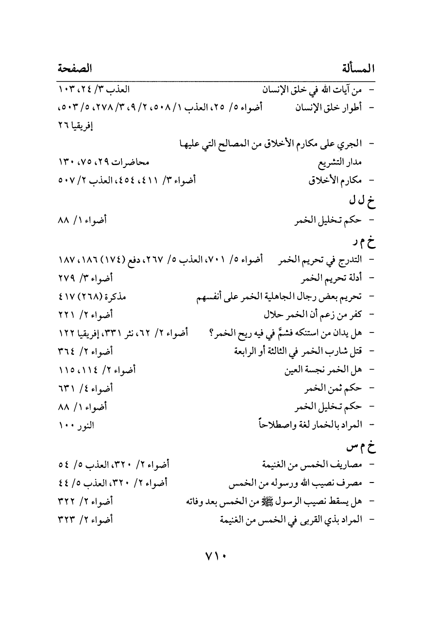 - التدرج في تحريم الخمر ... أضواء ٥/ ٧٠١، العذب ٥/ ٢٦٧، دفع (١٧٤) ١٨٦، ١٨٧