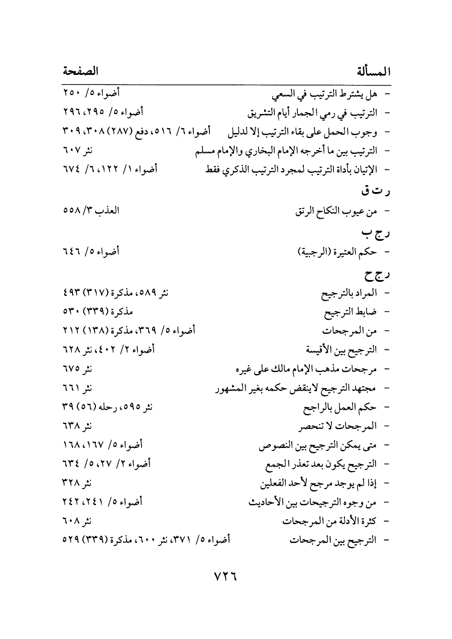 - وجوب الحمل على بقاء الترتيب إلا لدليل ... أضواء ٦/ ٥١٦، دفع (٢٨٧) ٣٠٨، ٣٠٩