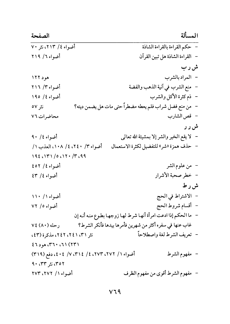 - تعريف الشرط لغة واصطلاحاً ... نثر ٣١، ٢٤١، ٢٤٢، مذكرة (٤٣، ٢٣١) ٦١، ٣٦٠، هود ٤٦