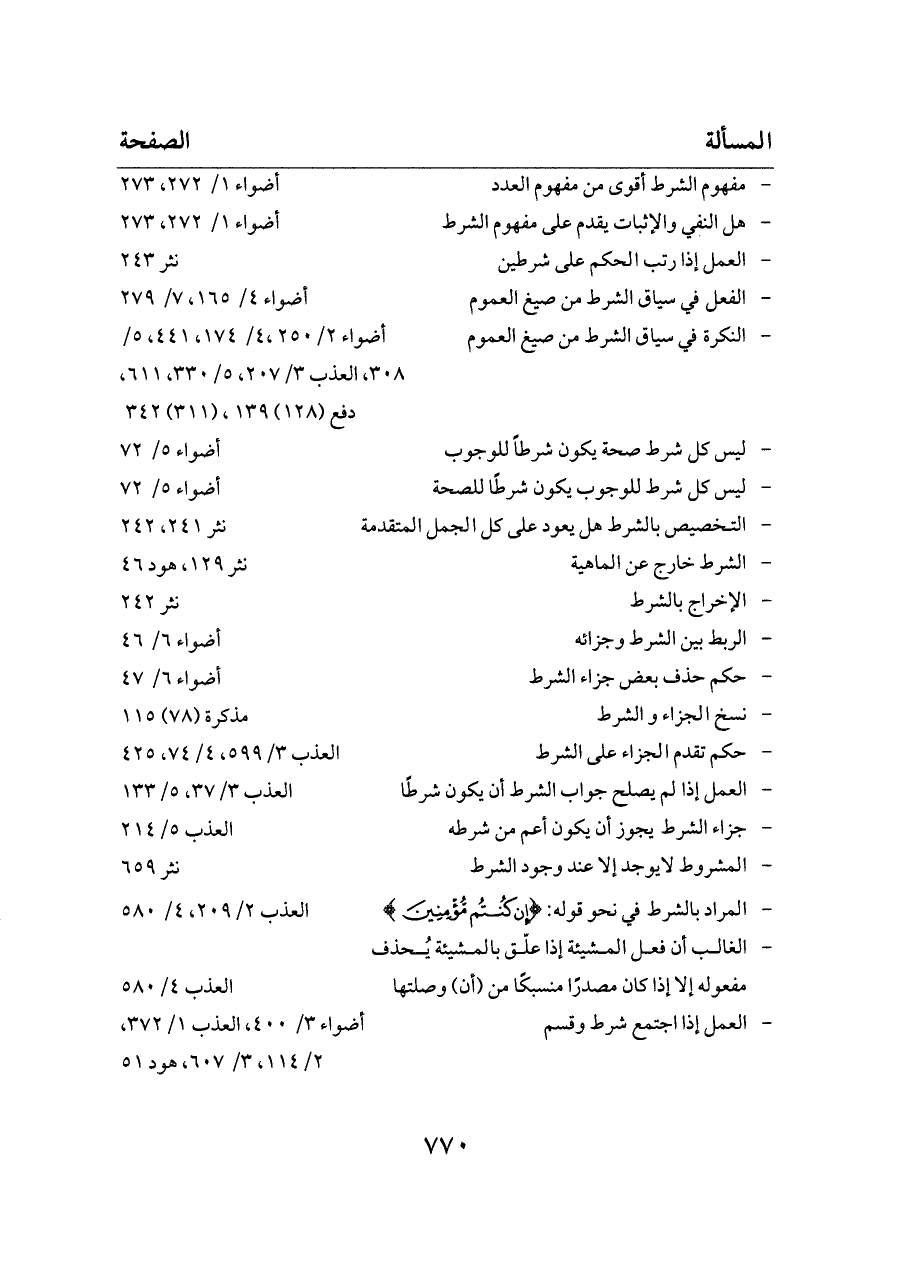 - النكرة في سياق الشرط من صيغ العموم ... أضواء ٢/ ٢٥٠،٤/ ١٧٤، ٤٤١، ٥/ ٣٠٨، العذب ٣/ ٢٠٧، ٥/ ٣٣٠، ٦١١، دفع (١٢٨) ١٣٩، (٣١١) ٣٤٢