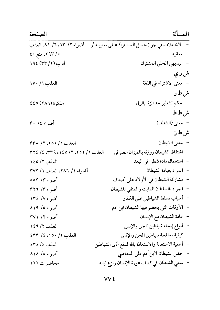 - الاختلاف في جوازحمل المشترك على معنييه أو معانيه ... أضواء ٢/ ١٣، ٦/ ٨١، العذب ٥/ ٢٩٣، منع ٤٠