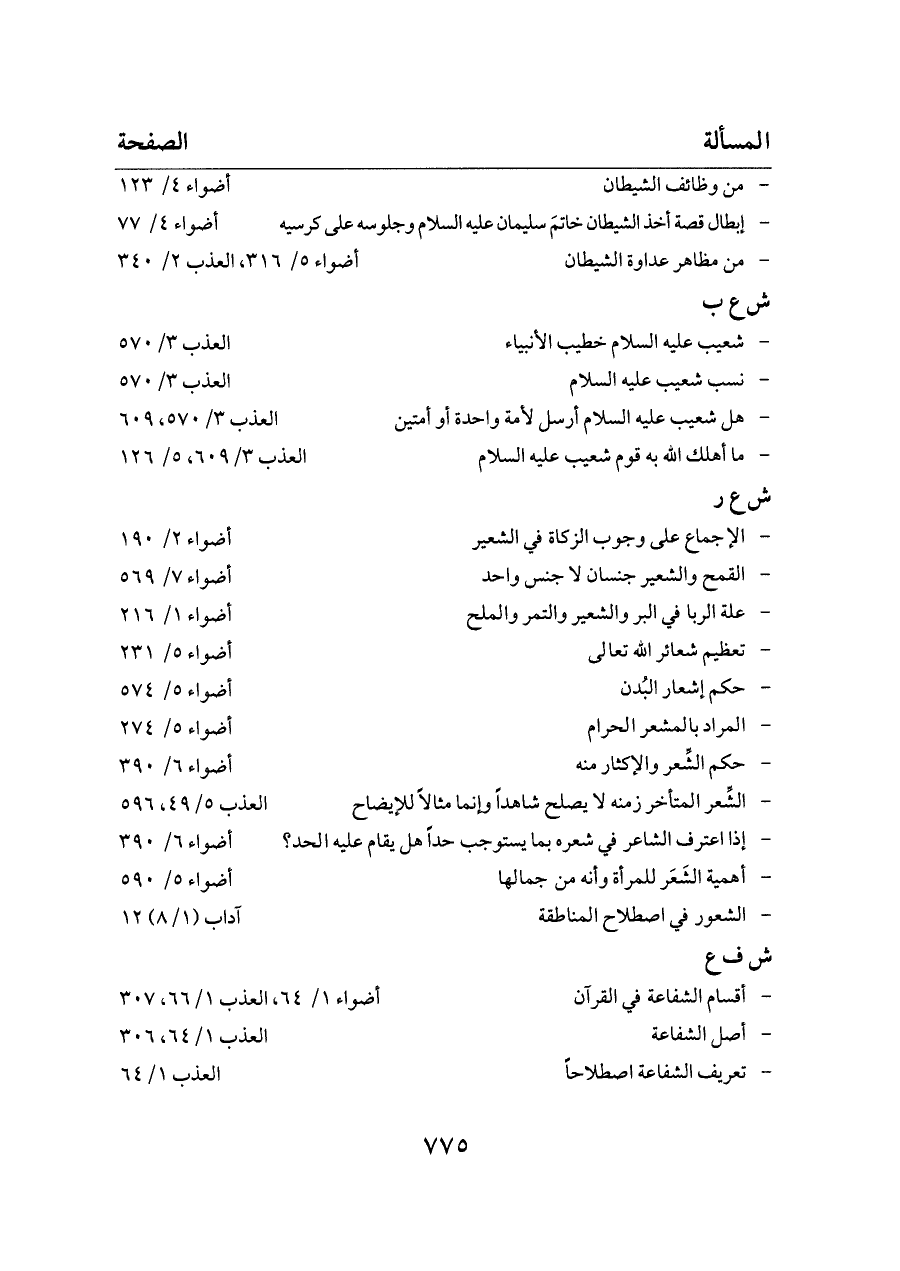 - ما أهلك الله به قوم شعيب عليه السلام ... العذب ٣/ ٦٠٩، ٥/ ١٢٦