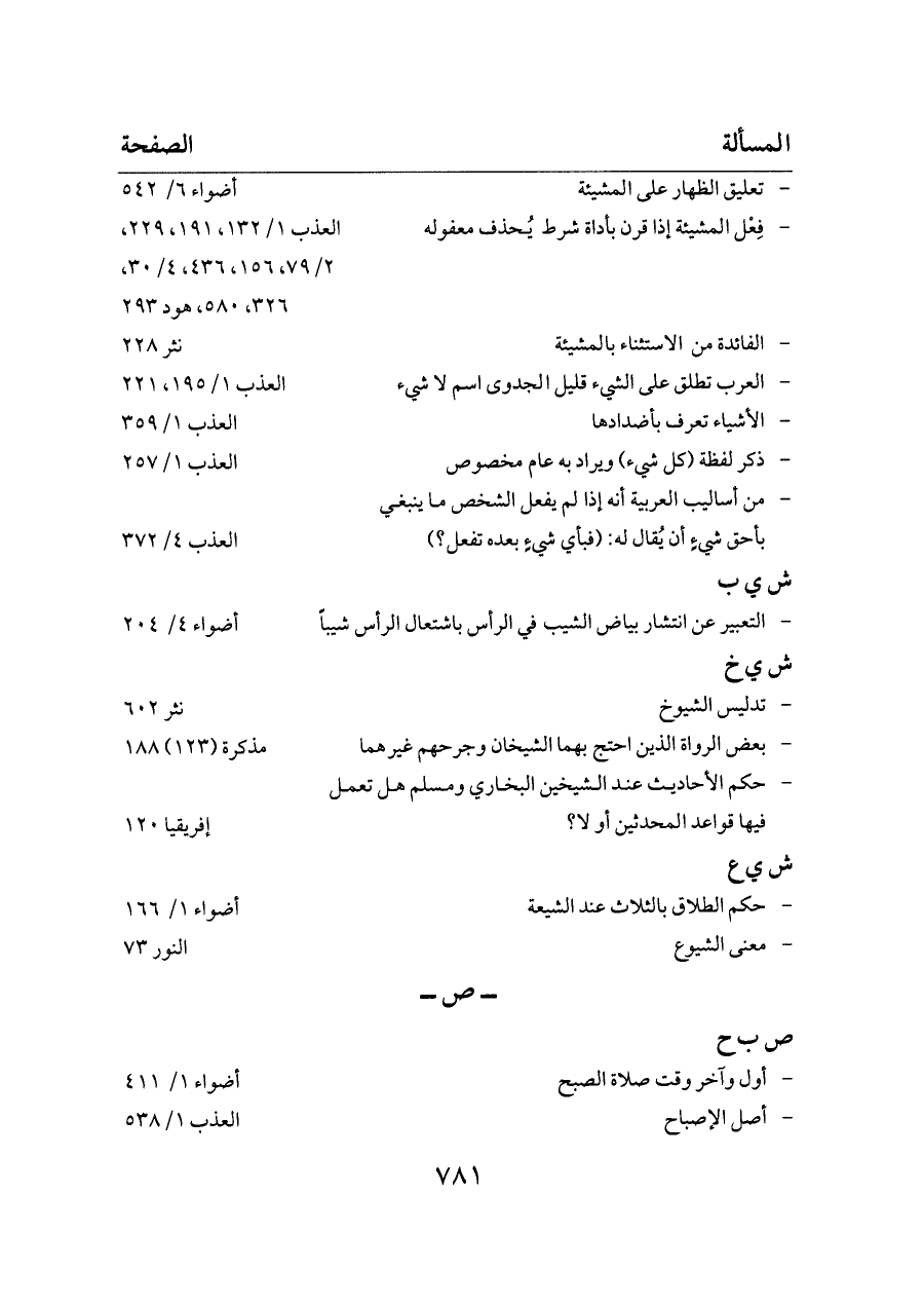 - فِعْل المشيئة إذا قرن بأداة شرط يُحذف معفوله ... العذب ١/ ١٣٢، ١٩١، ٢٢٩، ٢/ ٧٩، ١٥٦، ٤٣٦، ٤/ ٣٠، ٣٢٦، ٥٨٠، هود ٢٩٣
