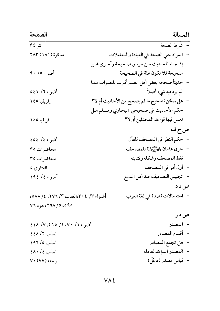 - استعمالات (صد) في لغة العرب ... أضواء ٣/ ٣٠٤،العذب ٣/ ٢٧٦، ٤/ ٥٨٨، ٥٩٥، ٥/ ٢٩٨، هود ٧٦