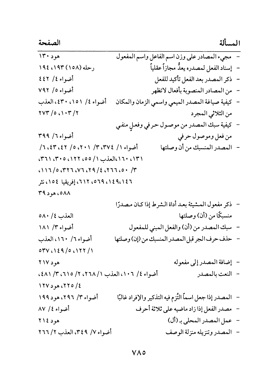 - النعت بالمصدر ... أضواء ٤/ ١٠٦، العذب ١/ ٢٦٨، ٢/ ٦١٥، ٣/ ٤٨١، ٤/ ٢٢٥، هود ١٢٧