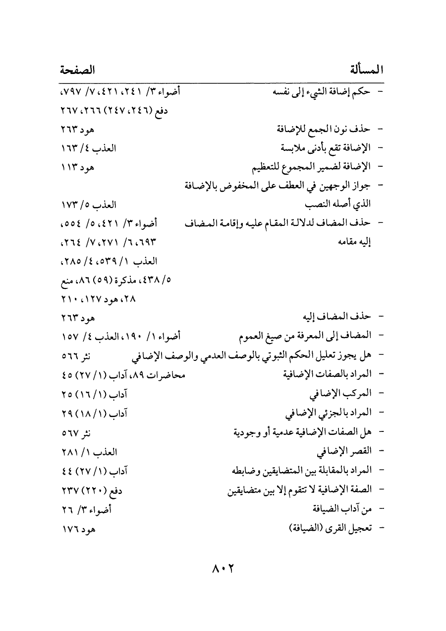 - حكم إضافة الشيء إلى نفسه ... أضواء ٣/ ٢٤١، ٤٢١، ٧/ ٧٩٧، دفع (٢٤٦، ٢٤٧) ٢٦٦، ٢٦٧