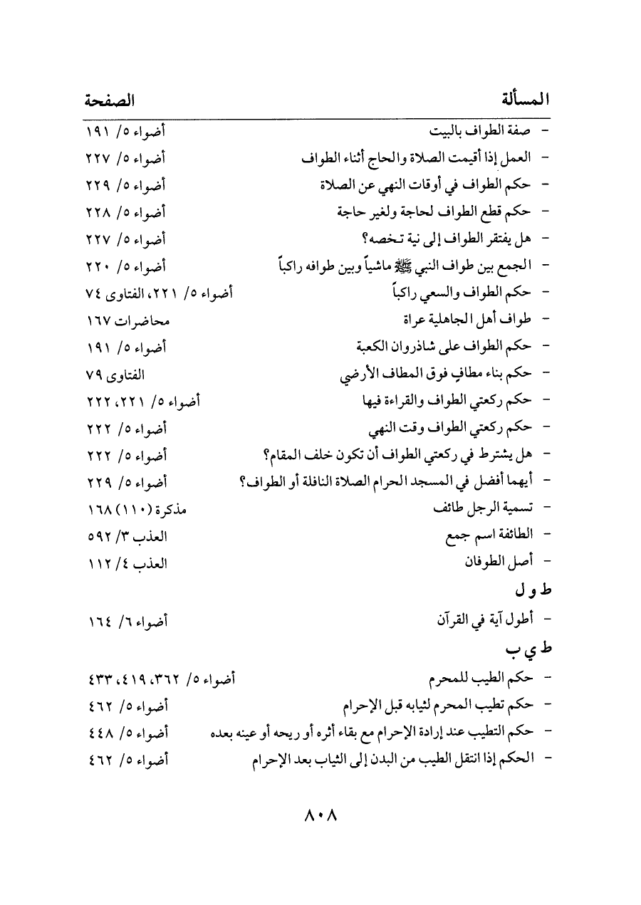 - حكم الطيب للمحرم ... أضواء ٥/ ٣٦٢، ٤١٩، ٤٣٣