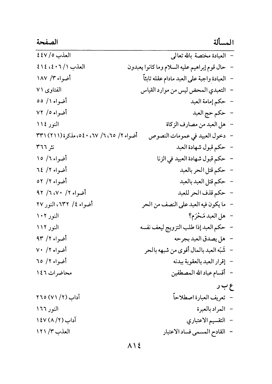 - دخول العبيد في عمومات النصوص ... أضواء ٢/ ٦٥، ٦/ ٦٧، ٥٤٠، مذكرة (٢١١) ٣٣١