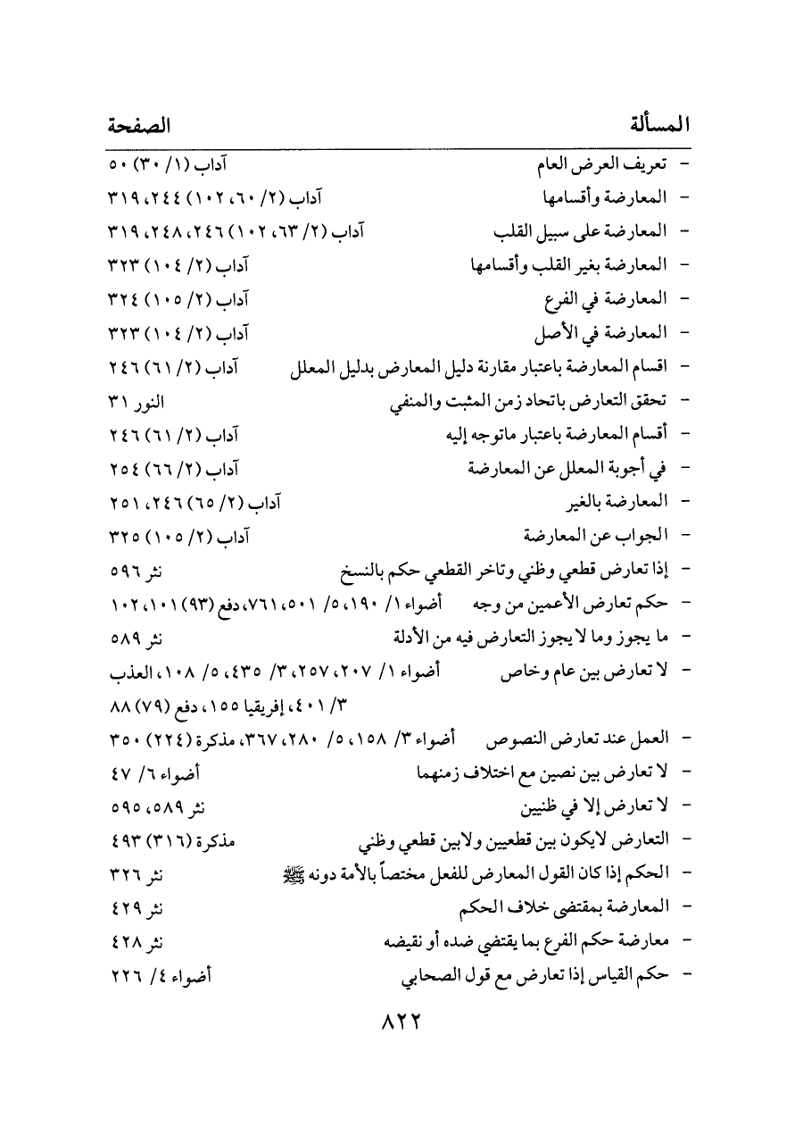 - المعارضة وأقسامها ... آداب (٢/ ٦٠، ١٠٢) ٢٤٤، ٣١٩
