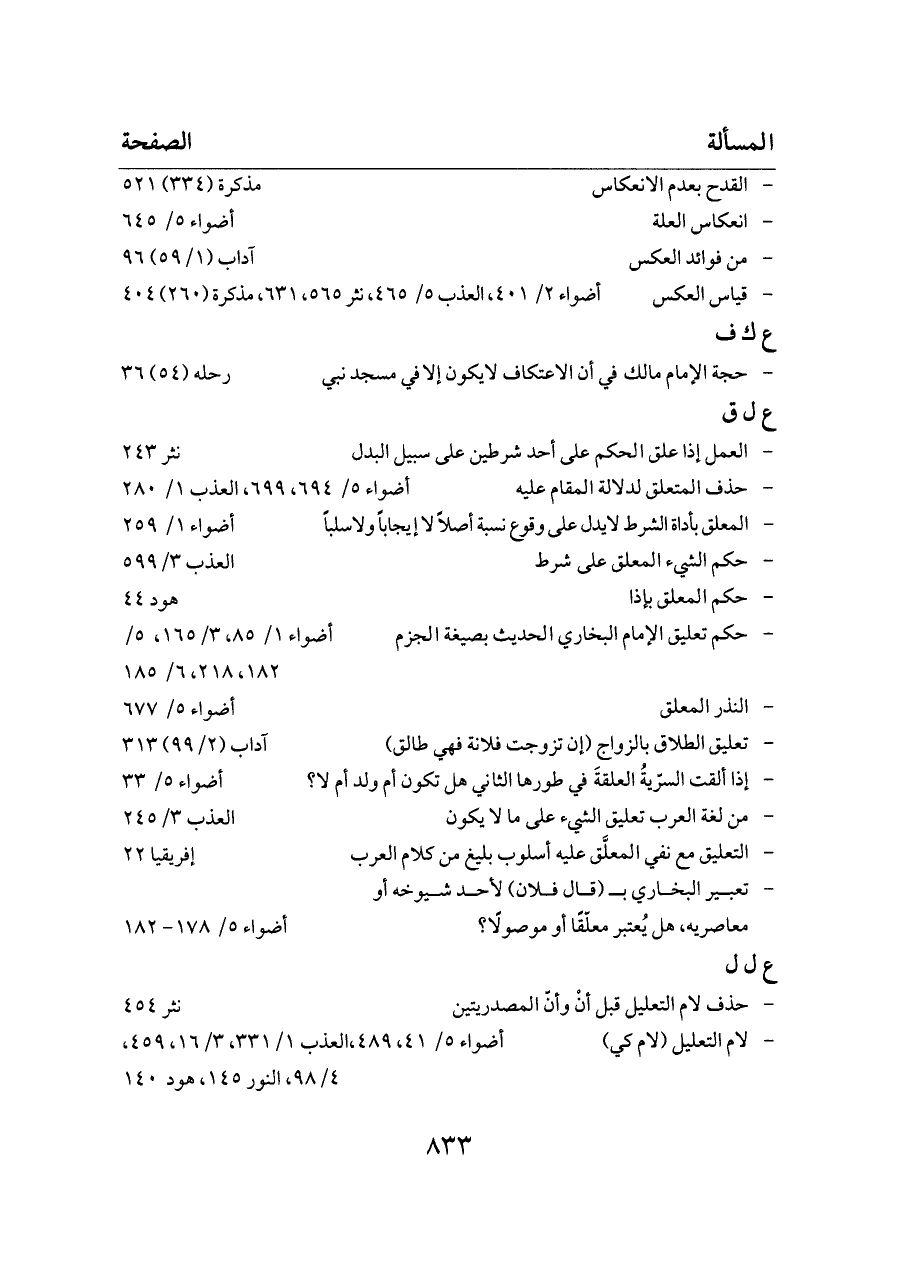 - لام التعليل (لام كي) ... أضواء ٥/ ٤١، ٤٨٩،العذب ١/ ٣٣١، ٣/ ١٦، ٤٥٩، ٤/ ٩٨، النور ١٤٥، هود ١٤٠