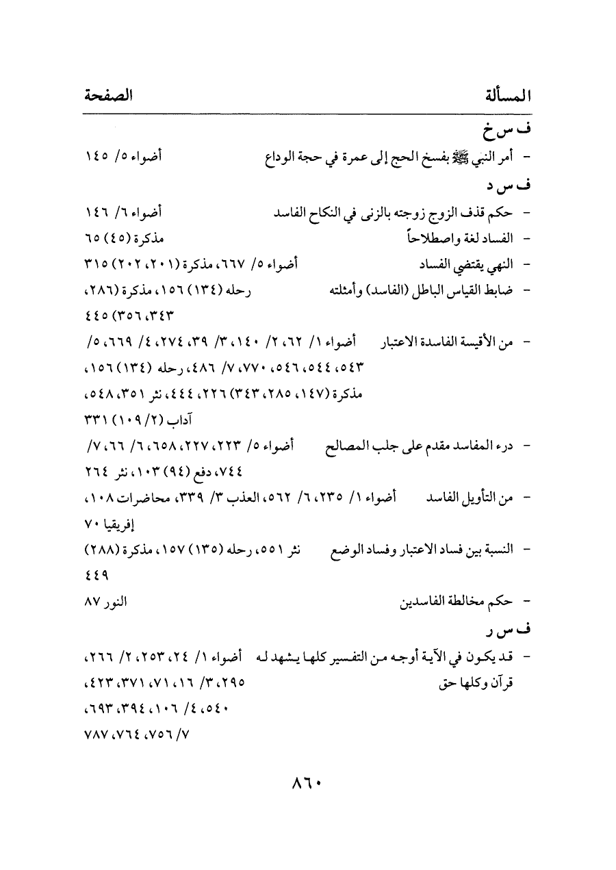 - درء المفاسد مقدم على جلب المصالح ... أضواء ٥/ ٢٢٣، ٢٢٧، ٦٥٨، ٦/ ٦٦، ٧/ ٧٤٤، دفع (٩٤) ١٠٣، نثر ٢٦٤