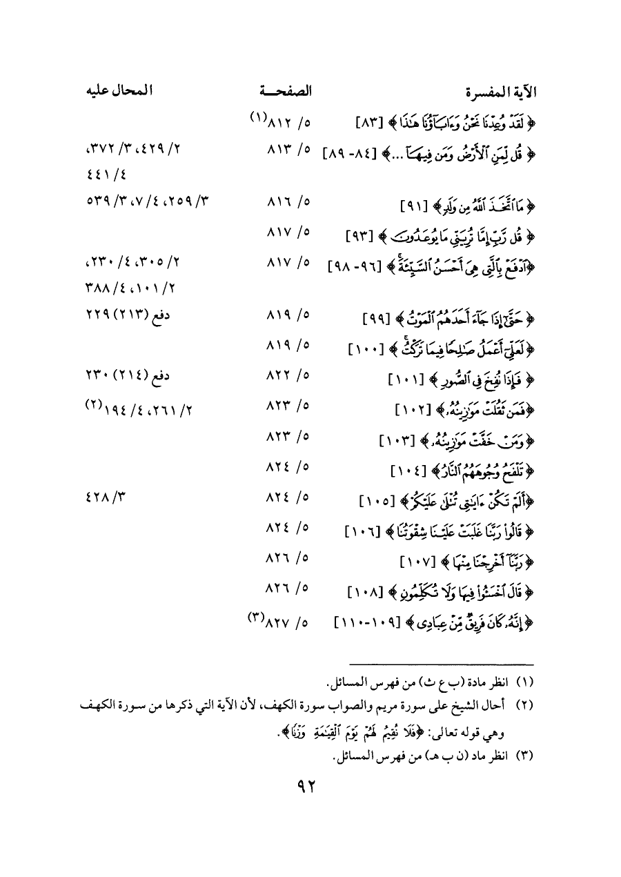 {فَمَنْ ثَقُلَتْ مَوَازِينُهُ} [١٠٢] ... ٥/ ٨٢٣ ... ٢/ ٢٦١، ٤/ ١٩٤ (¬٢)