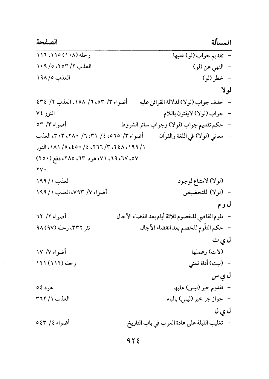 - معاني (لولا) في اللغة والقرآن ... أضواء ٣/ ٥٦٥، ٤/ ٣١، ٦/ ٢٨٠، ٣٠٣، العذب ١/ ١٩٩، ٢٤٨، ٣/ ٢٦٦، ٤/ ٤٥٠، ٥/ ١٨١، النور ٥٧، ٦٧، ٦٩، ٧١، هود ٦٣، ٢٨٥، دفع (٢٥٠) ٢٧٠