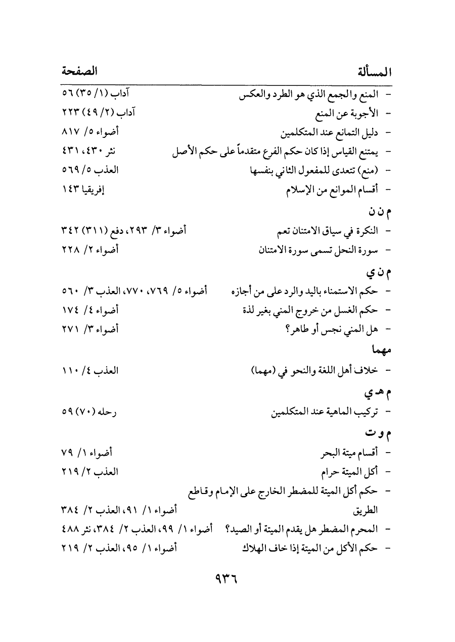 - المحرم المضطر هل يقدم الميتة أو الصيد؟ ... أضواء ١/ ٩٩، العذب ٢/ ٣٨٤، نثر ٤٨٨
