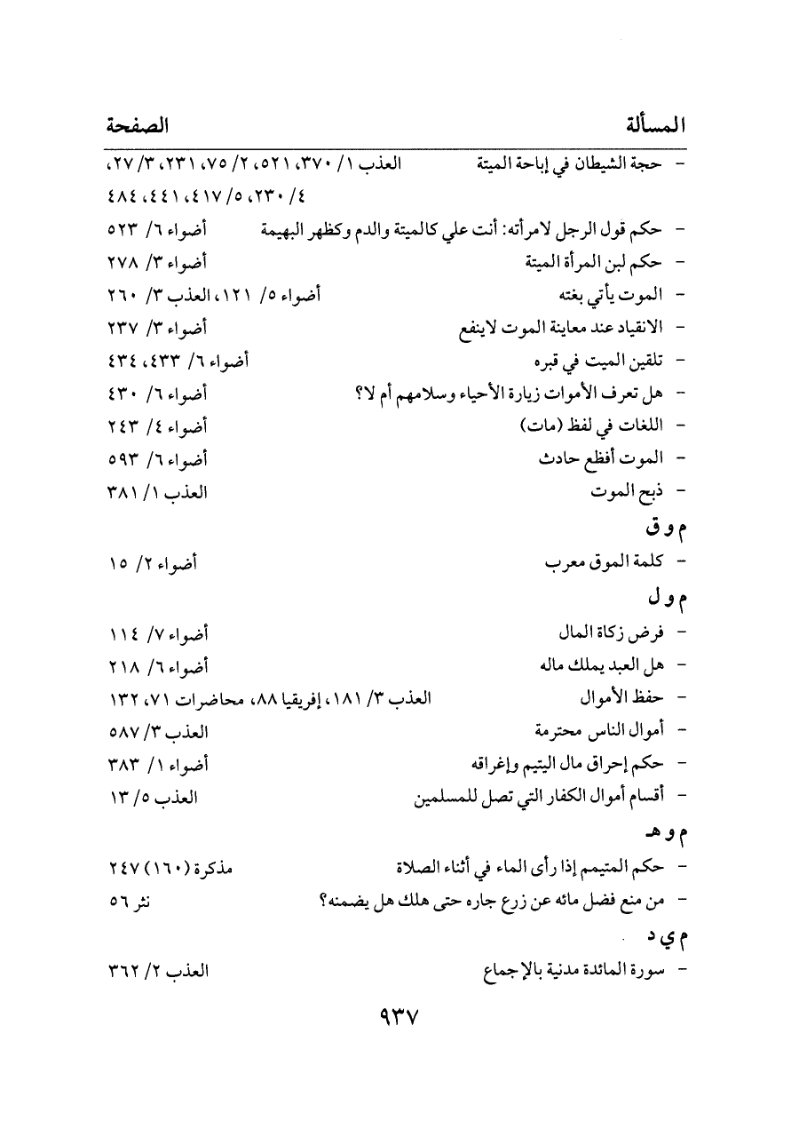 - حجة الشيطان في إباحة الميتة ... العذب ١/ ٣٧٠، ٥٢١، ٢/ ٧٥، ٢٣١، ٣/ ٢٧، ٤/ ٢٣٠، ٥/ ٤١٧، ٤٤١، ٤٨٤