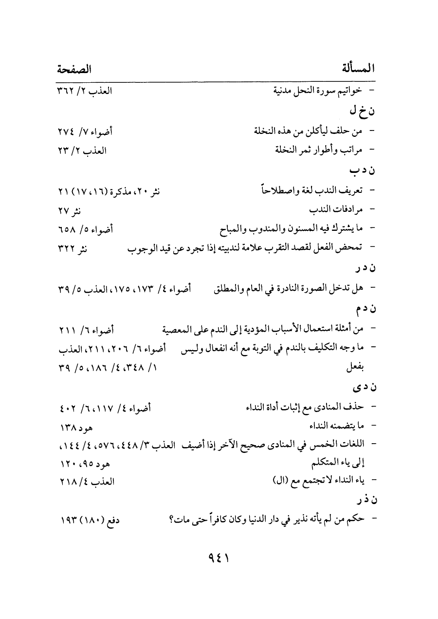 - ما وجه التكليف بالندم في التوبة مع أنه انفعال وليس بفعل ... أضواء ٦/ ٢٠٦، ٢١١، العذب ١/ ٣٤٨، ٤/ ١٨٦، ٥/ ٣٩