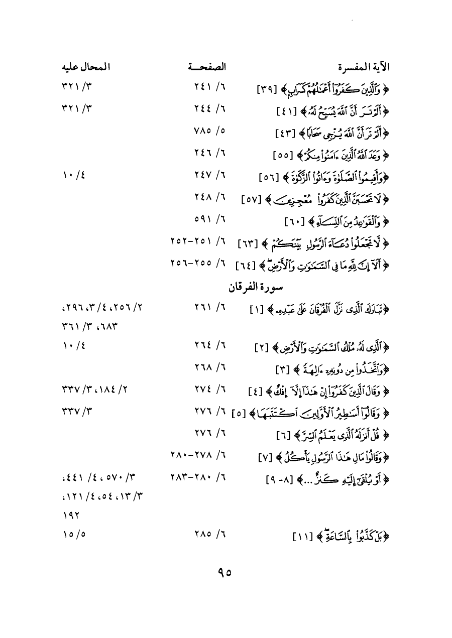 {تَبَارَكَ الَّذِي نَزَّلَ الْفُرْقَانَ عَلَى عَبْدِهِ} [١] ... ٦/ ٢٦١ ... ٢/ ٢٥٦، ٤/ ٣، ٢٩٦، ٦٨٣، ٣/ ٣٦١