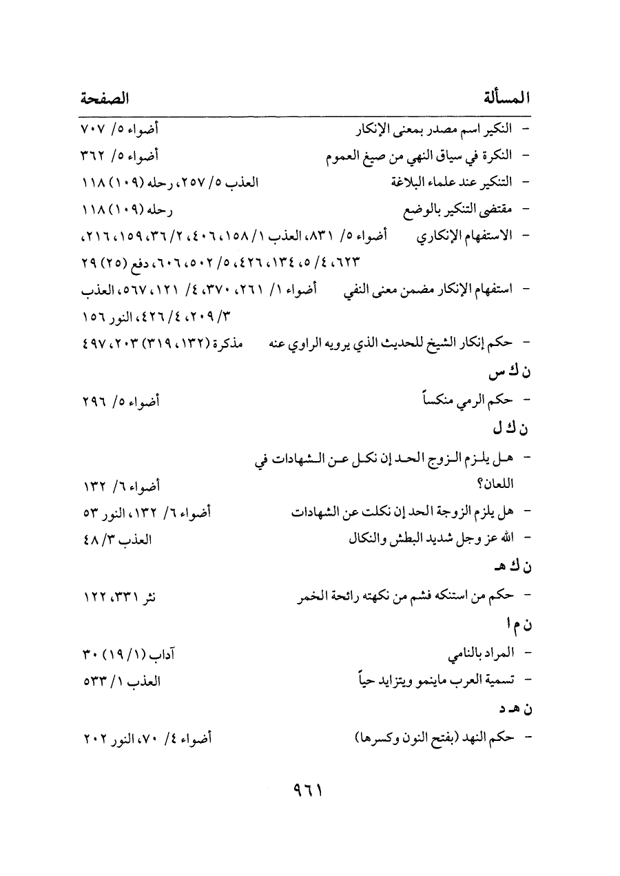 - الاستفهام الإنكاري ... أضواء ٥/ ٨٣١، العذب ١/ ١٥٨، ٤٠٦، ٢/ ٣٦، ١٥٩، ٢١٦، ٦٢٣، ٤/ ٥، ١٣٤، ٤٢٦، ٥/ ٥٠٢، ٦٠٦، دفع (٢٥) ٢٩
