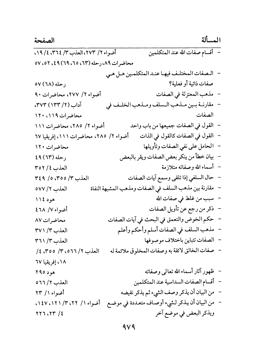 - أقسام صفات الله عند المتكلمين ... أضواء ٢/ ٢٧٣، العذب ٣/ ٣٦٤، ٤/ ١٩، محاضرات ٨٩، رحله (٦٣، ٦٥، ٦٩) ٤٩، ٥٢، ٥٧