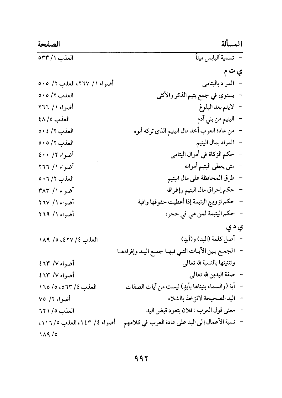 - أصل كلمة (اليد) و (أيدٍ) ... العذب ٤/ ٤٢٧، ٥/ ١٨٩