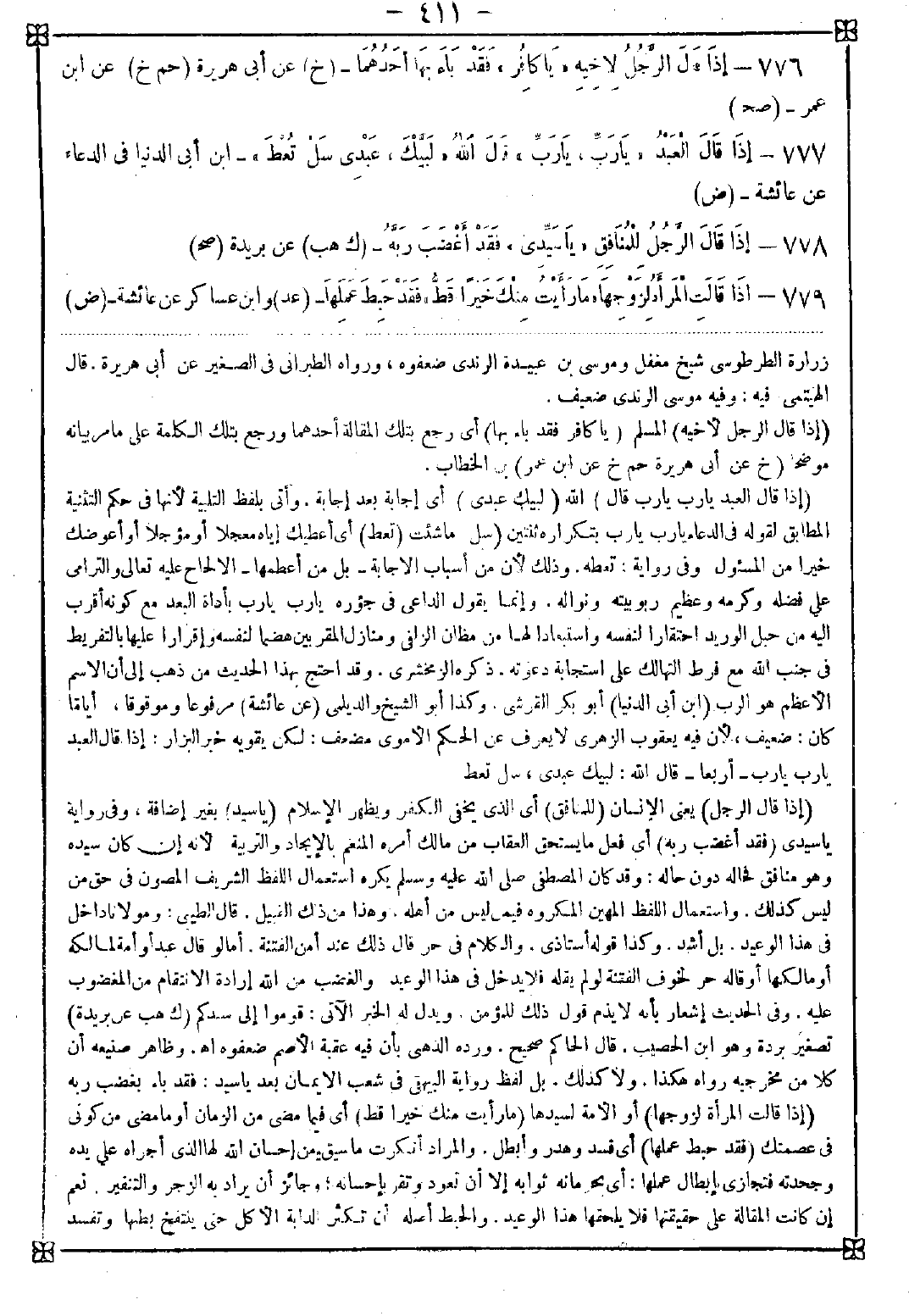 776 - (إذا قال الرجل لأخيه) المسلم (يا كافر فقد باء بها) أي رجع بتلك المقالة أحدهما ورجع بتلك الكلمة على ما مر بيانه موضحا