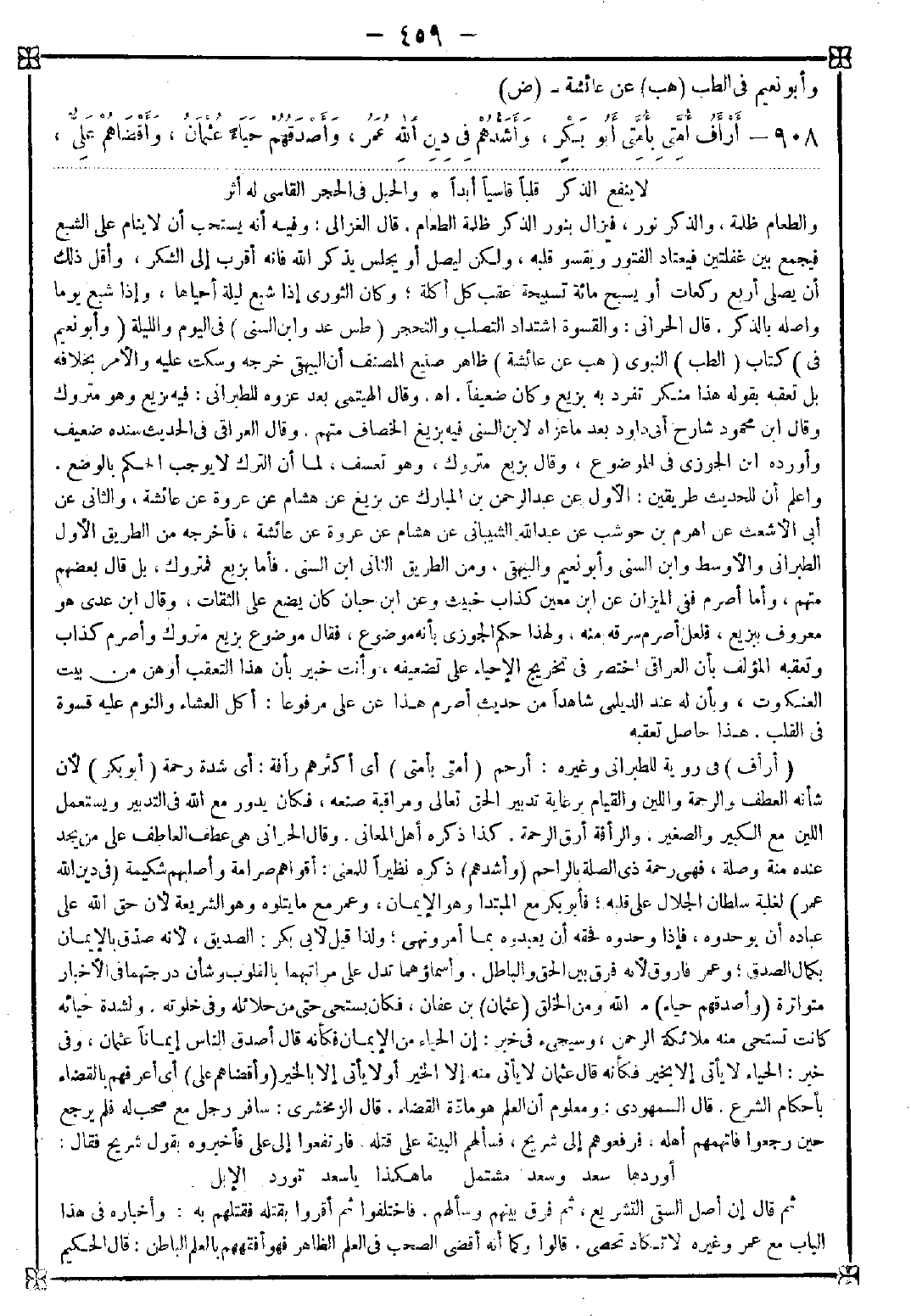 908 - (أرأف) في رواية للطبراني وغيره: أرحم (أمتي بأمتي) أي أكثرهم رأفة: أي شدة رحمة (أبو بكر) لأن شأنه العطف والرحمة واللين والقيام برعاية تدبير الحق تعالى ومراقبة صنعه فكان يدور مع الله في التدبير ويستعمل اللين مع الكبير والصغير. والرأفة أرق الرحمة